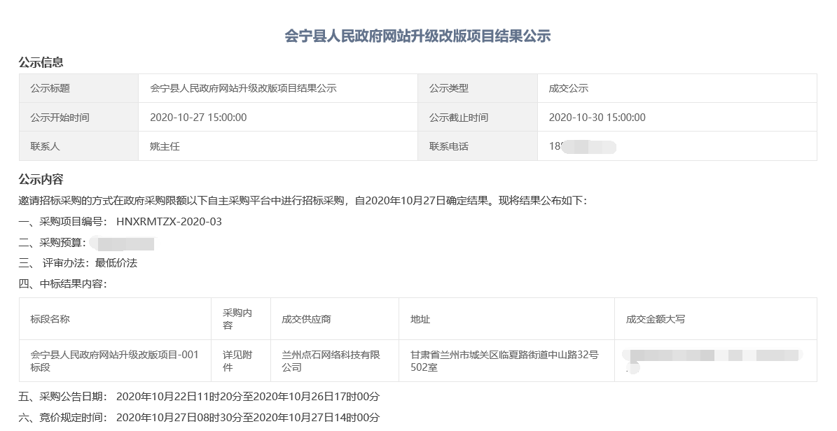 2020年10月,我司參加“會寧縣人民政府網(wǎng)站升級改版項(xiàng)目”招標(biāo)會,在投標(biāo)過程中以良好的信譽(yù)、豐富的行業(yè)經(jīng)驗(yàn)、強(qiáng)大的技術(shù)實(shí)力以及優(yōu)秀的項(xiàng)目實(shí)施方案獲得了評標(biāo)專家組的一致認(rèn)可,以最佳的成績順利中標(biāo)。