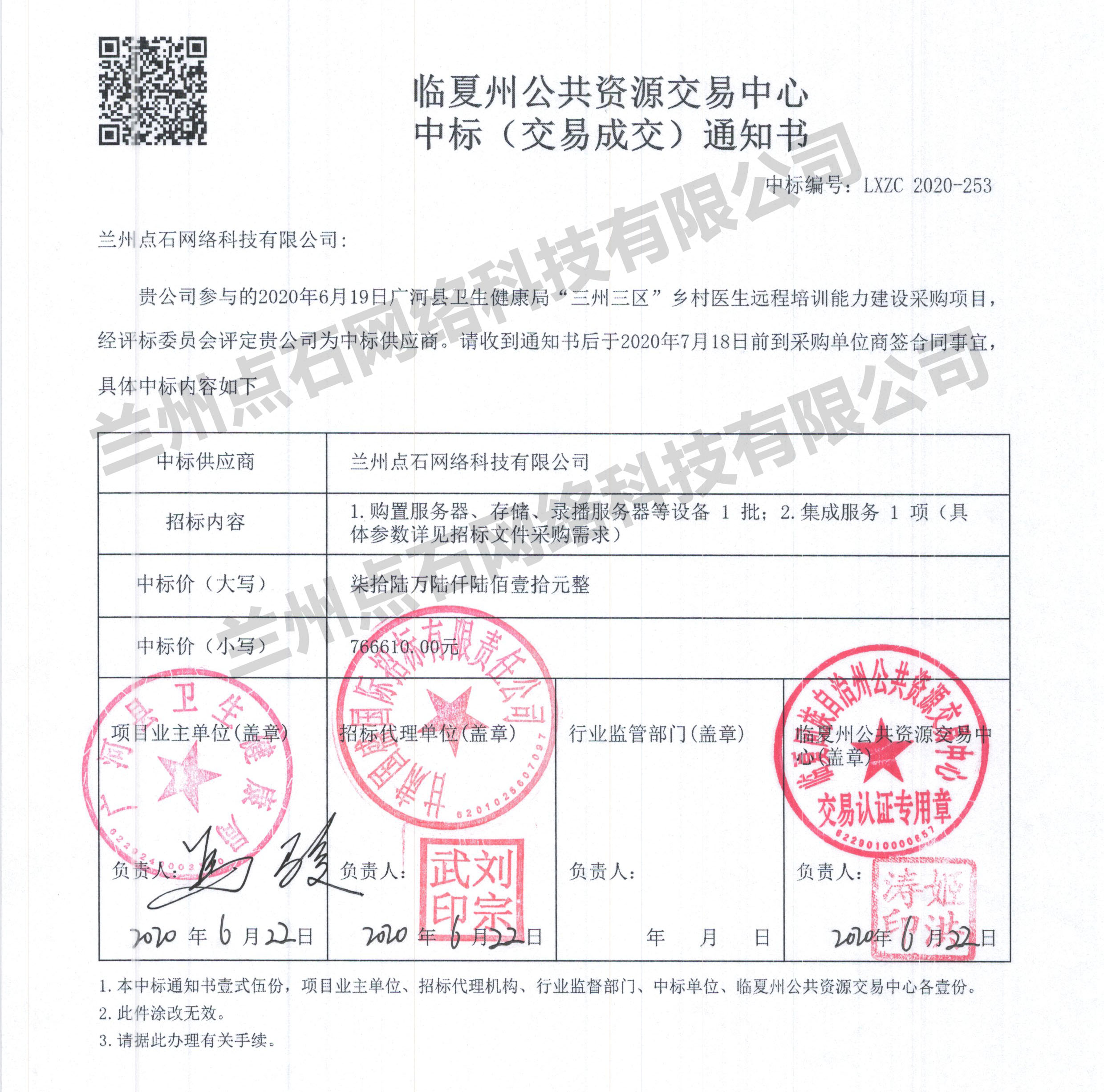 蘭州點石網(wǎng)絡(luò)科技有限公司近日捷報頻傳,繼2020年6月17日中標(biāo)永靖縣醫(yī)療衛(wèi)生“一站式”服務(wù)和區(qū)域遠(yuǎn)程醫(yī)療中心建設(shè)項目后,一鼓作氣,乘勝追擊,憑借良好的公司信譽和可靠的技術(shù)力量,成功中標(biāo)廣河縣衛(wèi)生健康局“三州三區(qū)”鄉(xiāng)村醫(yī)生遠(yuǎn)程培訓(xùn)能力建設(shè)采購項目。